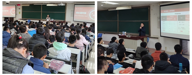 介绍结束后,姜澜带来了题目为《飞秒激光制造:理论、方法及应用》的讲座。讲座开始他以图片对比的方式带同学们领略了时间及空间的奇妙,从宇宙的浩瀚到夸克的微小描述自然界的神奇,引入了飞秒激光加工技术的科研背景,随后详细介绍了飞秒激光加工的加工原理、发展历程、重要作用及其科研团队的重大成果。姜澜院长通过介绍前沿科学技术,提高新生对科研的兴趣度,鼓励同学们学好基础课,尽早深入实验室接触科研。同时在院长面对面入学第一课上教会同学们科学的思维方式和态度:学会质疑、不断探索。