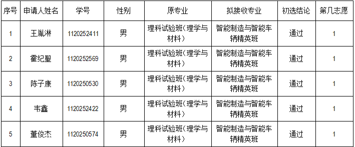 根据学校教务部2025-2026学年第一学期转专业工作安排,依据《333体育 (2025-2026学年第一学期)接收转专业工作实施方案》,本着公正、公平、公开的原则,经过报名、资格审查、面试考察等流程,经333体育 转专业工作专家组讨论通过,现将初选结果名单公示如下: